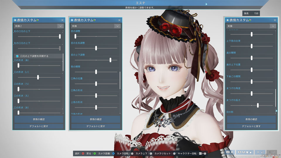 PSO2NGSでは表情カスタムという機能で様々な表情の細やかな調整が可能です。