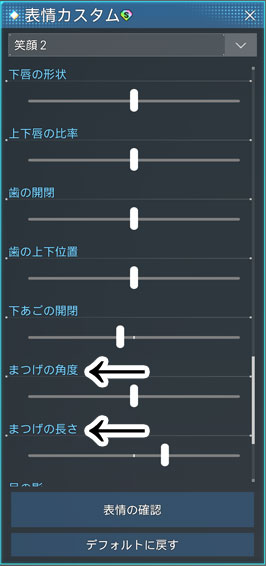 - 表情カスタムの各表情の「まつげの角度」(※2)