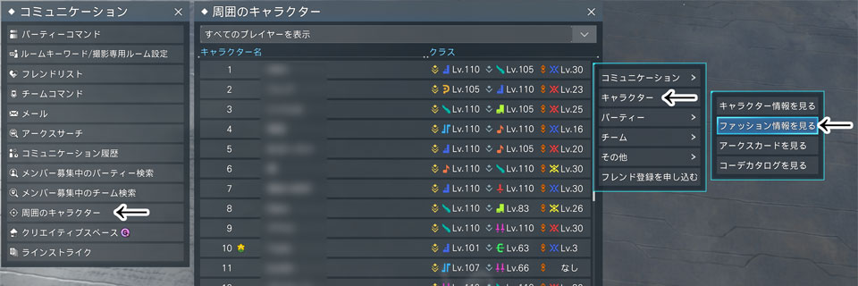 なお、事前にゲーム内で他キャラの外見が正確に表示されるよう設定されているか確認しておいてください。