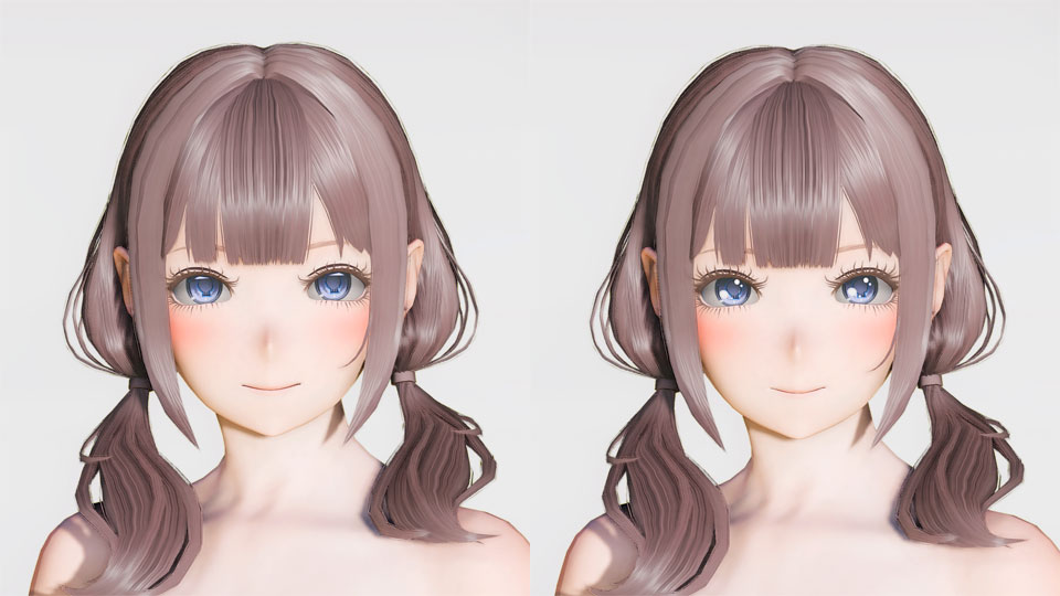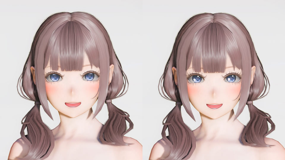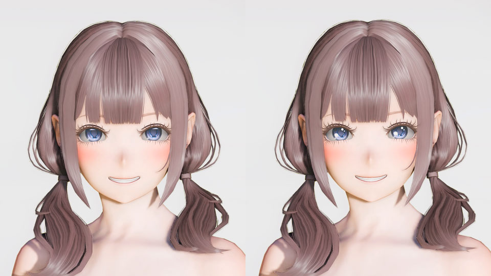 自分の場合は基本的にかわいい自キャラのSSを撮るのが目的で笑顔くらいしか使わないのでそれ以外の表情を作るつもりがないですが、今回の項目追加で口角や上下唇がかなり自在に調整できるようになったのでその気になればかなり幅広く表情を作れそうです。